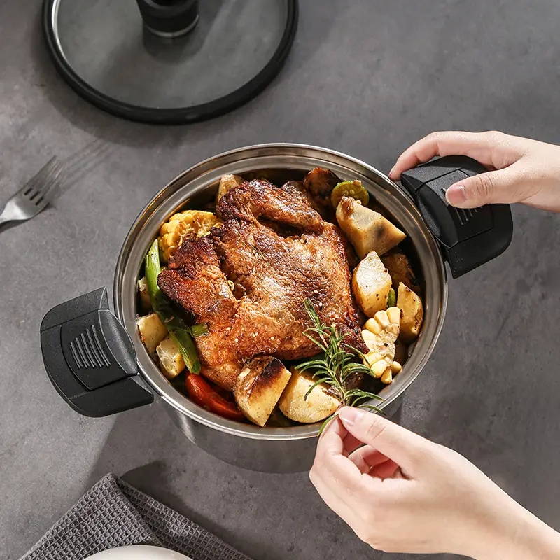 A stainless steel pressure cooker is a sealed pot that uses steam pressure to cook food faster than conventional methods. Unlike ordinary pots, a pressure cooker traps steam inside, raising the pressure and temperature to cook food more quickly. Stainless steel versions are particularly popular due to their strength, durability, and resistance to corrosion. They also retain the natural flavor and nutrients of the food while reducing cooking time and energy consumption.